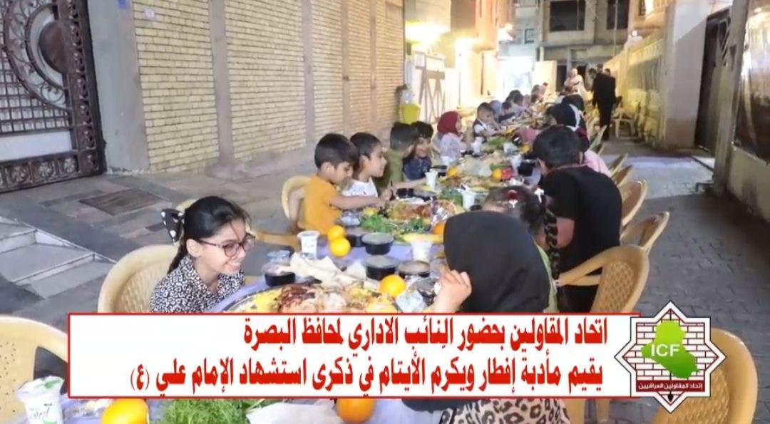 أقام اتحاد المقاولين العراقيين – فرع البصرة مأدبة إفطار وتكريمًا للأيتام، تزامنًا مع ذكرى استشهاد أمير المؤمنين الإمام علي بن أبي طالب (عليه السلام).